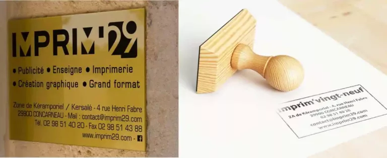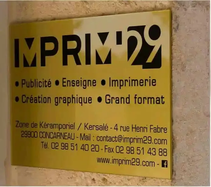 Imprim29 Pub Océan grave vos plaques sur différentes matières, en découpe standard ou à la forme de votre choix.