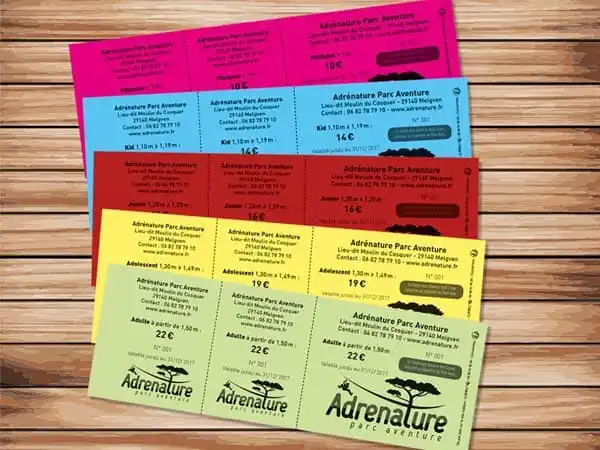 Billets de tombola, tickets de loterie, places de spectacle… nous imprimons votre billetterie numérotée en carnets ou chéquiers détachables. Textes, couleurs, images personnalisables, numérotation séquentielle et micro-perforation pour un détachage facile.